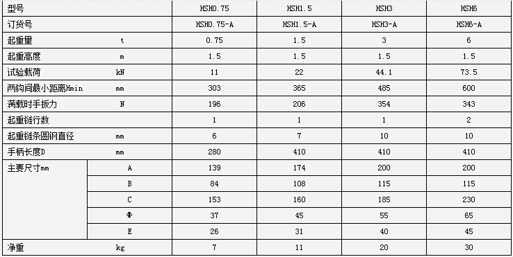 1、結構設計:它的上下鉤架選用的是精鍛工藝,制動器采用的是雙棘爪,設計有制動離合裝置,手柄部分還設計有雙向棘爪,這些部分都可以使得我們安全操作。