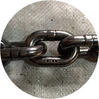 正品9噸飛鴿手扳葫蘆鏈條如上圖所示,直徑為10cm,節距為10*30,鏈條行數為3行,其表面有防偽標識。